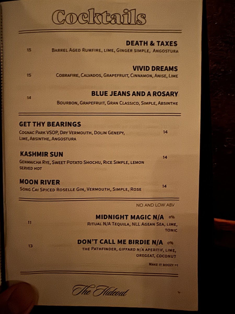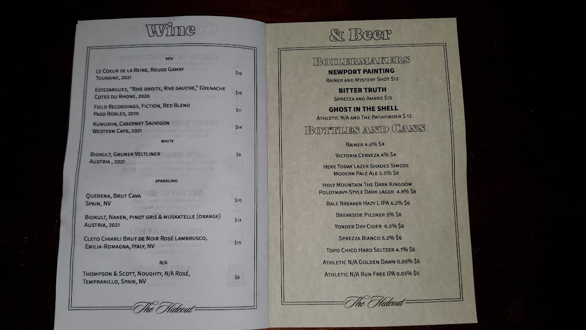 The Hideout Menu